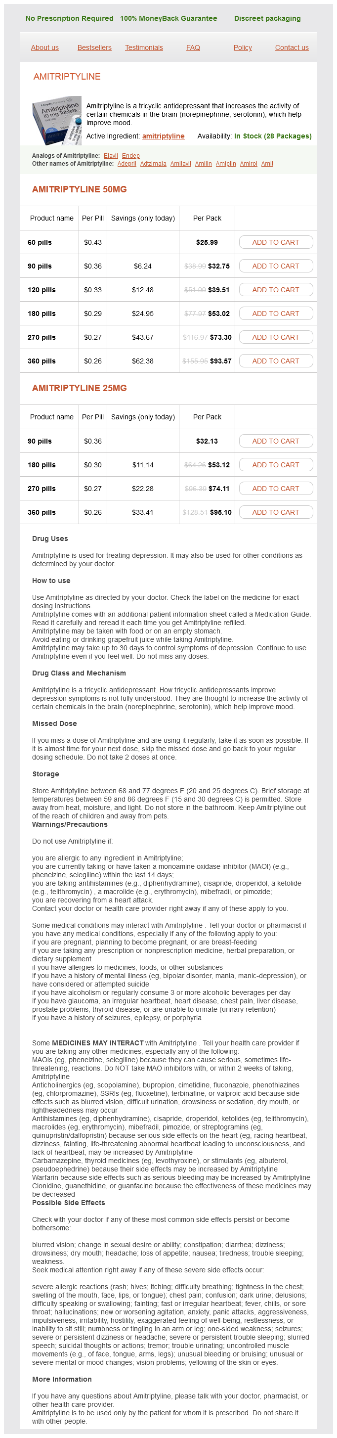 Amitriptyline packs: 60 pills, 90 pills, 120 pills, 180 pills, 270 pills, 360 pills