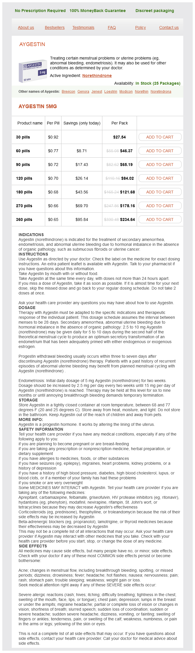 Aygestin dosages: 5 mg