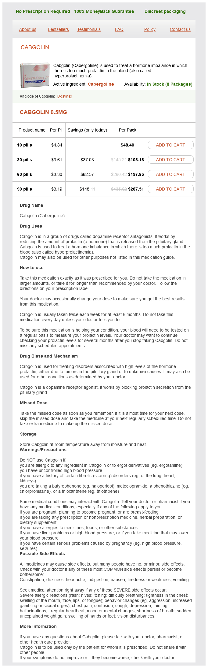Cabgolin dosages: 0.5 mg