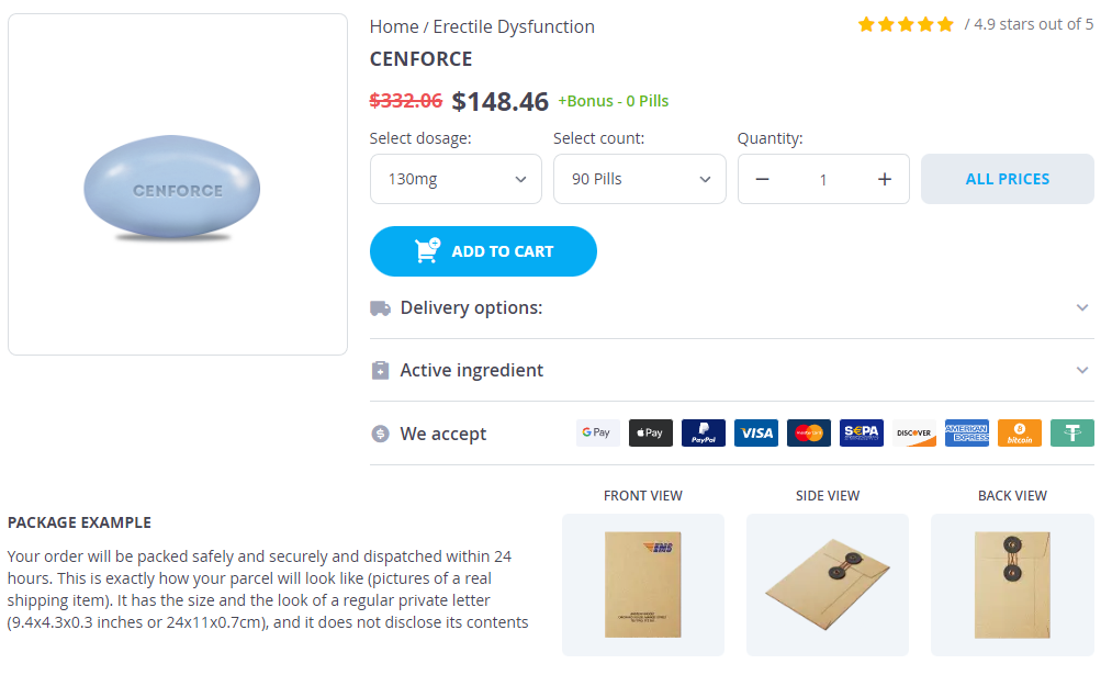 Cenforce packs: 10 pills, 20 pills, 30 pills, 60 pills, 90 pills, 120 pills, 180 pills, 270 pills, 360 pills