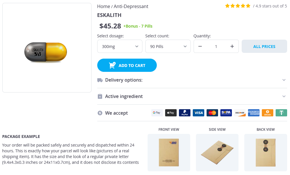 Eskalith packs: 90 pills, 180 pills, 270 pills, 360 pills