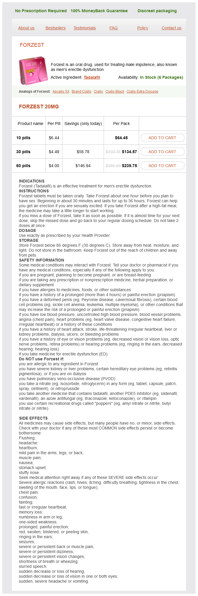 Forzest packs: 10 pills, 30 pills, 60 pills