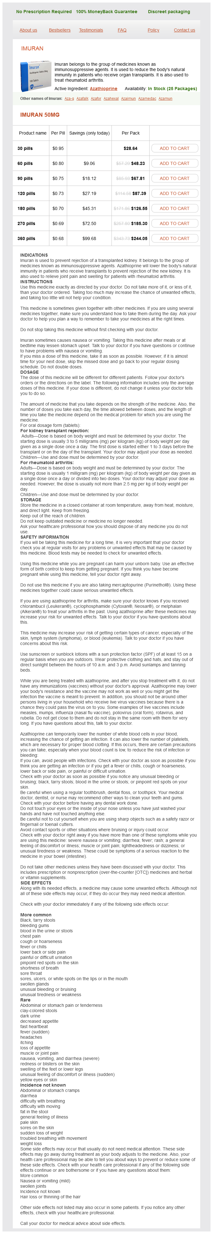 Imuran packs: 30 pills, 60 pills, 90 pills, 120 pills, 180 pills, 270 pills, 360 pills
