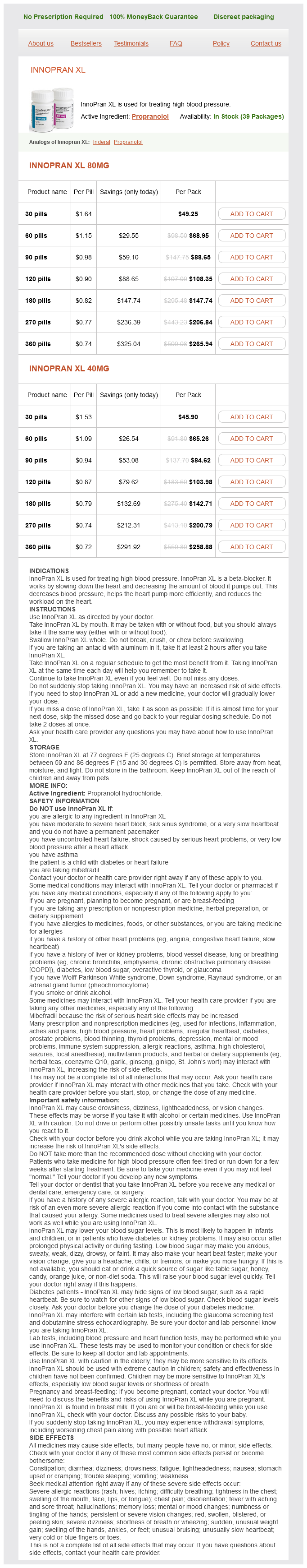 Innopran XL packs: 30 pills, 60 pills, 90 pills, 120 pills, 180 pills, 270 pills, 360 pills