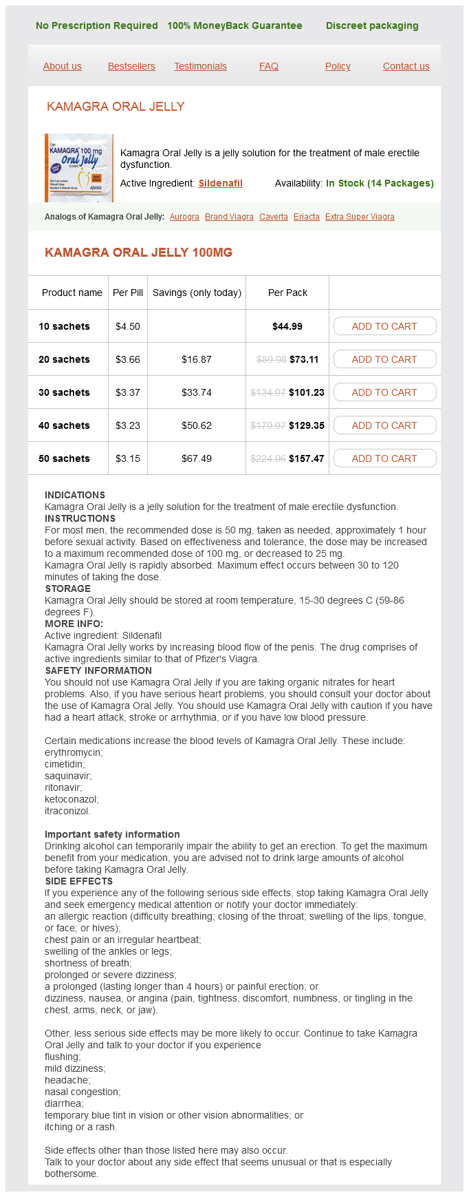 Kamagra Oral Jelly packs: 10 sachets, 20 sachets, 30 sachets, 40 sachets, 50 sachets