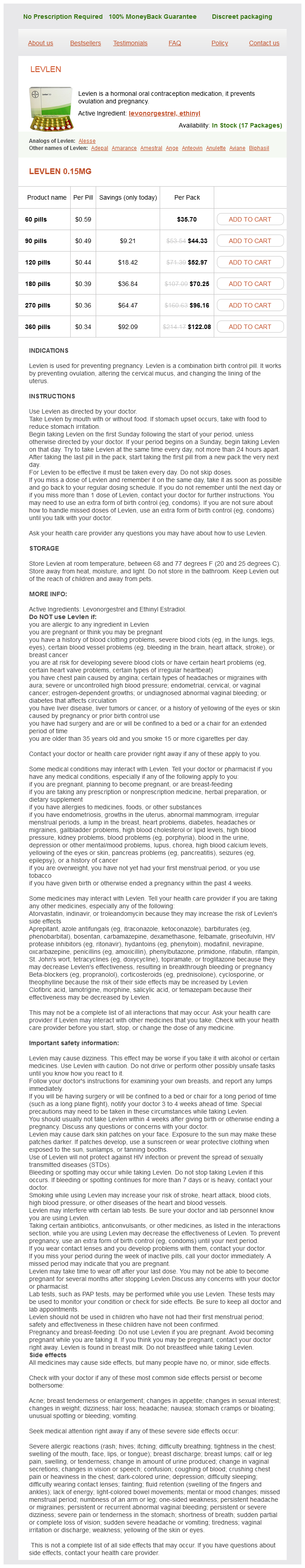 Levlen packs: 60 pills, 90 pills, 120 pills, 180 pills, 270 pills, 360 pills
