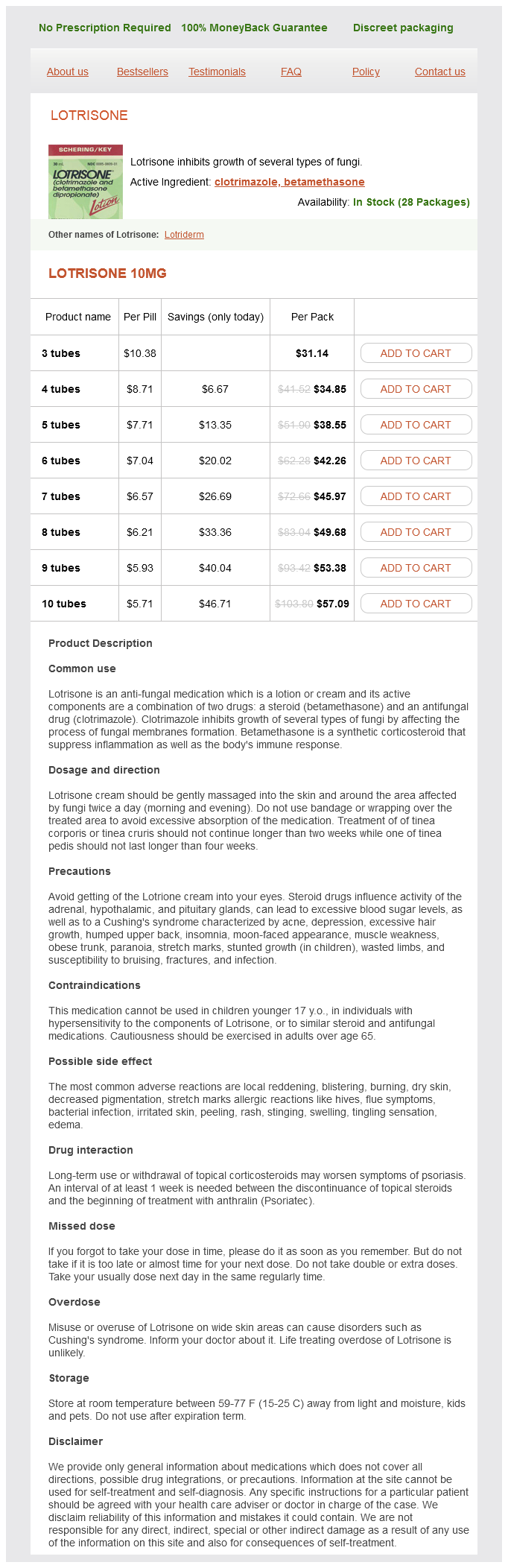 Lotrisone dosages: 10 mg