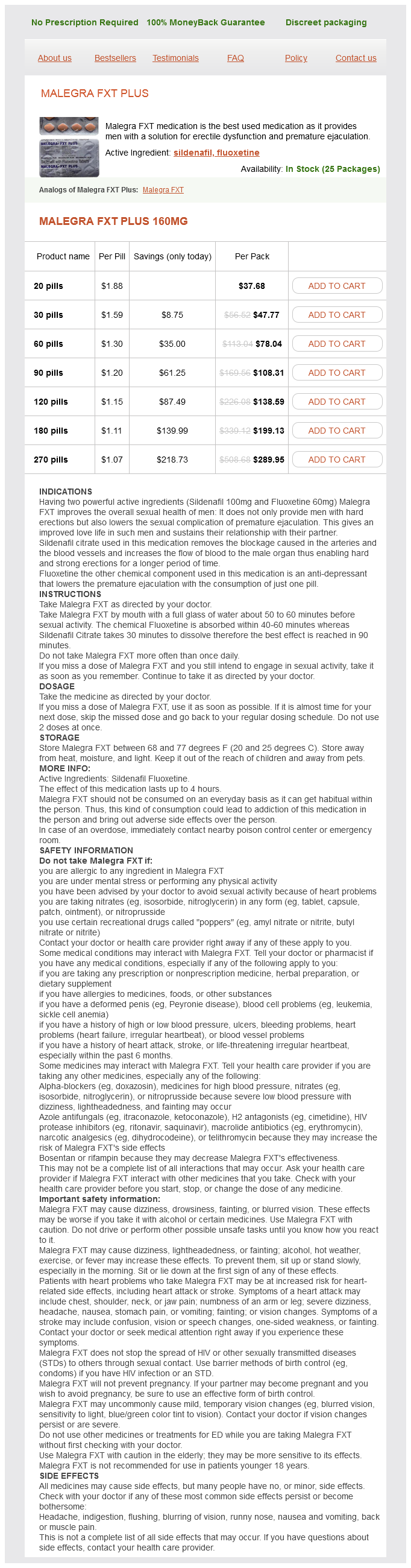 Malegra FXT Plus packs: 20 pills, 30 pills, 60 pills, 90 pills, 120 pills, 180 pills, 270 pills