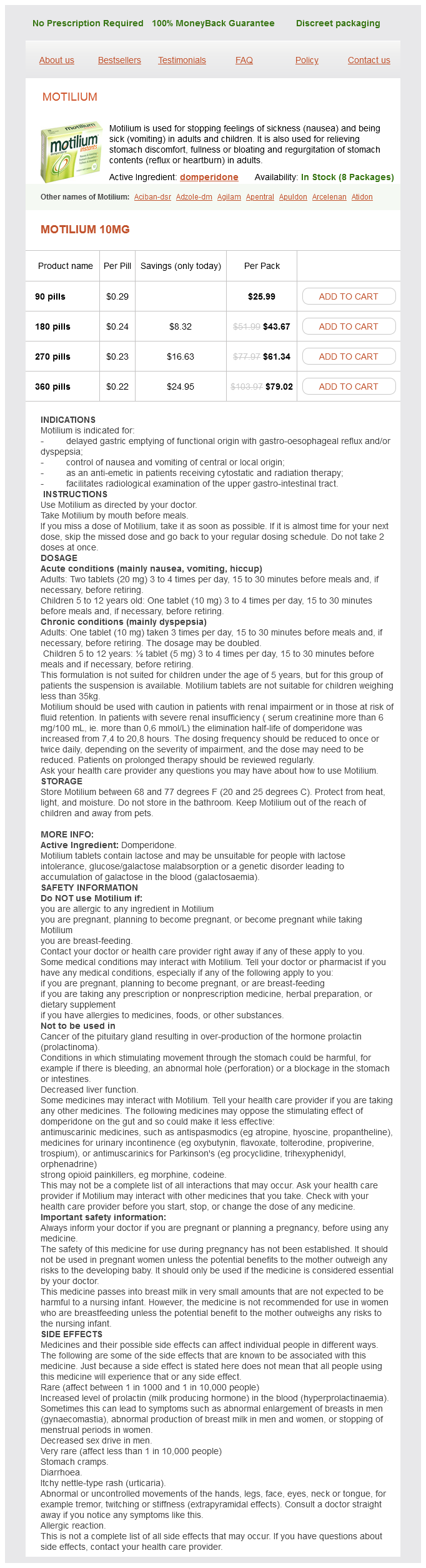 Motilium packs: 90 pills, 180 pills, 270 pills, 360 pills