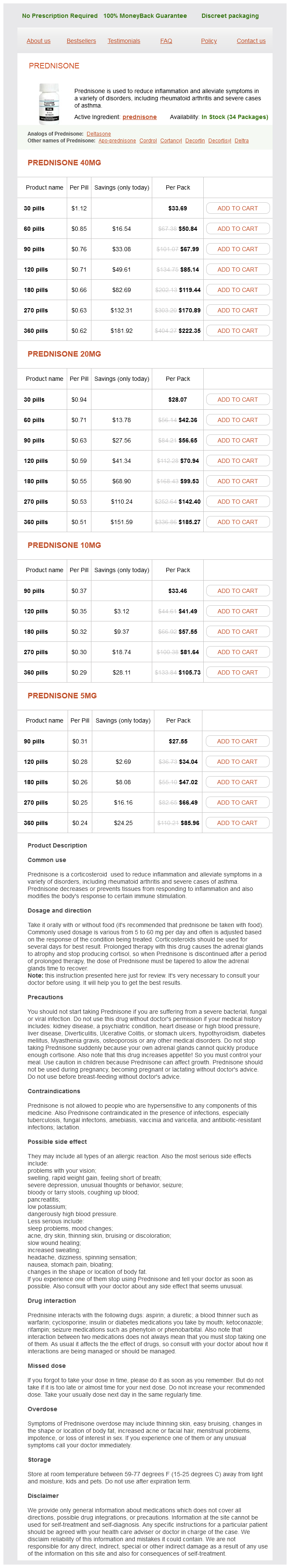 Prednisone packs: 30 pills, 60 pills, 90 pills, 120 pills, 180 pills, 270 pills, 360 pills