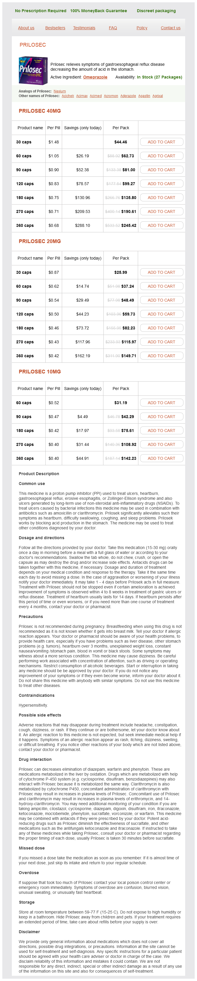 Prilosec packs: 30 caps, 60 caps, 90 caps, 120 caps, 180 caps, 270 caps, 360 caps