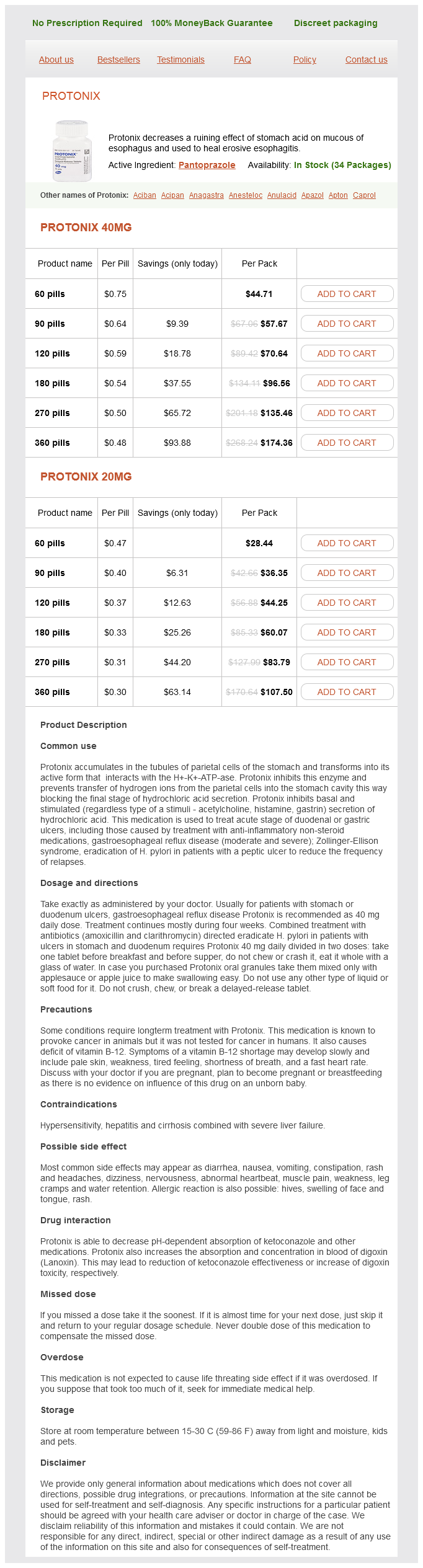 Protonix packs: 60 pills, 90 pills, 120 pills, 180 pills, 270 pills, 360 pills