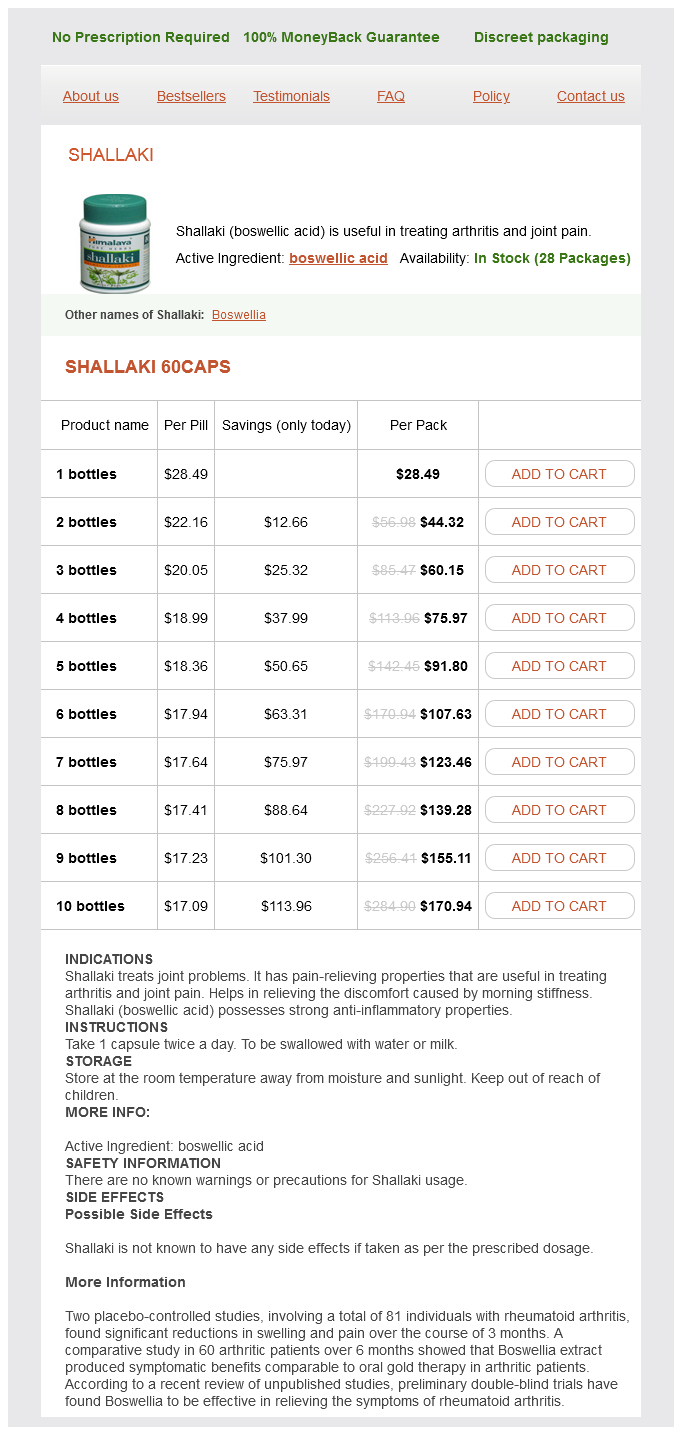 Shallaki dosages: 60 caps