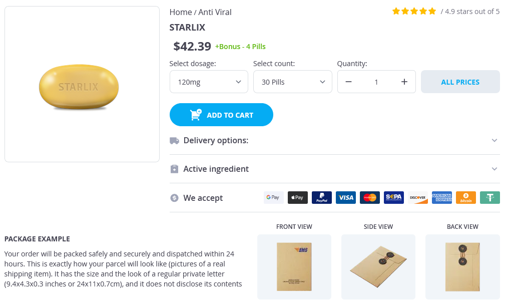 Starlix packs: 30 pills, 60 pills, 90 pills