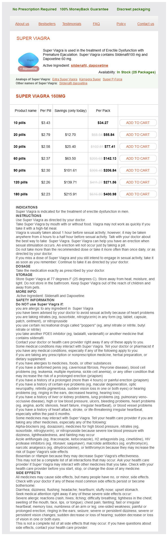 Super Viagra packs: 10 pills, 20 pills, 30 pills, 60 pills, 90 pills, 120 pills, 180 pills