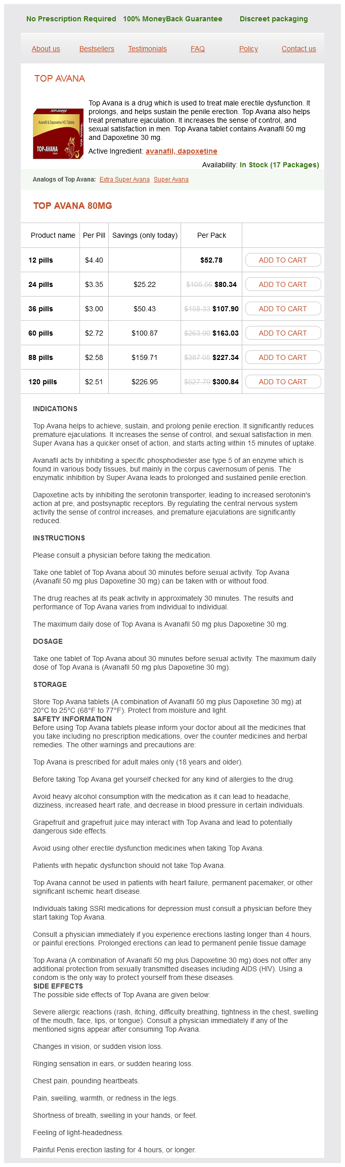 Top Avana packs: 12 pills, 24 pills, 36 pills, 60 pills, 88 pills, 120 pills