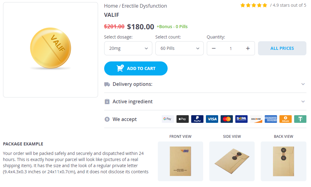 Valif packs: 30 pills, 60 pills, 120 pills, 240 pills