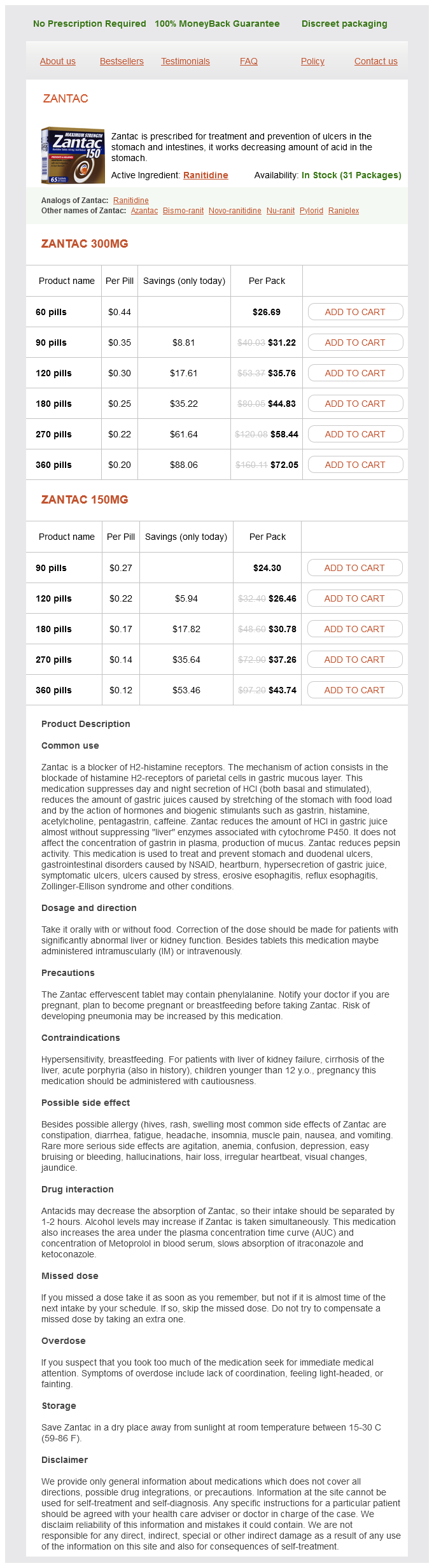 Zantac packs: 60 pills, 90 pills, 120 pills, 180 pills, 270 pills, 360 pills