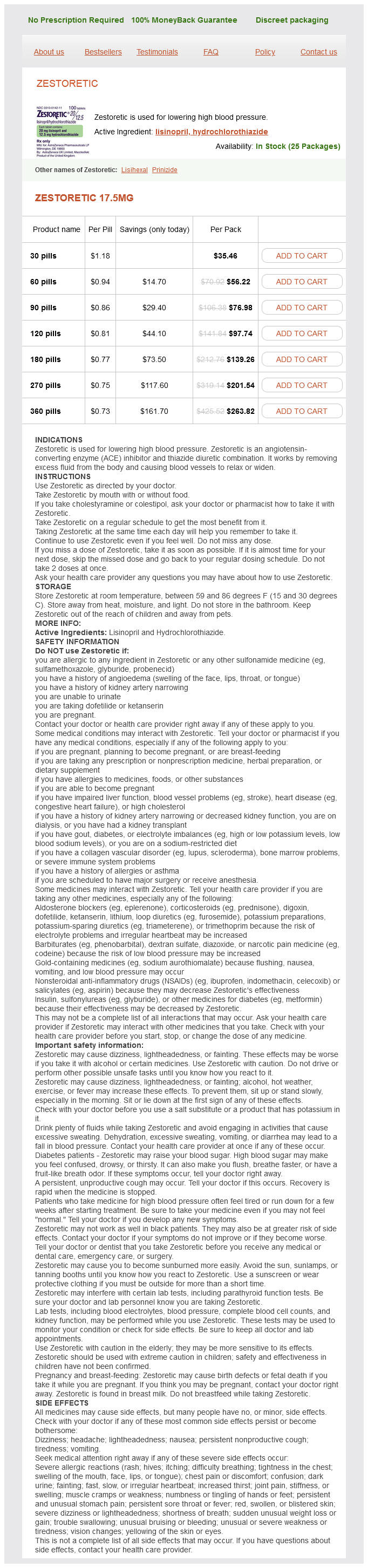 Zestoretic dosages: 17.5 mg