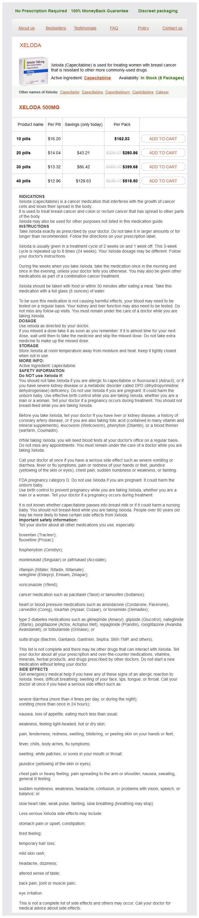 A general cardiovascular class effect of these compounds is the augmentation of blood pressure women's health free trial raspberry ketone order generic capecitabine on-line. It is yet unclear whether cardiac dysfunction induced by angiogenesis inhibitors is reversible women's health thyroid problems purchase genuine capecitabine online. Persistent cardiac dysfunction has been noted in some persons treated with sunitinib menstrual edema buy generic capecitabine 500 mg on-line. These other effects may explain why heart failure is more common in patients treated with these multityrosine kinase inhibitors women's health center jacksonville fl buy generic capecitabine. Preclinical studies have shown that proteasome disruption inhibits proliferation menstrual cycle 8 days early purchase capecitabine 500 mg line, induces apoptosis, reverses chemoresistance, and enhances chemotherapy and radiation efficacy in some tumors. The proteasome pathway is also critical for maintenance of cardiac structure and function, and altered proteasome function is associated with cardiac pathophysiology. Bortezomib is used for initial treatment of patients with multiple myeloma based on its effects on plasma cell proliferation. The side effects reported include asthenia, peripheral neuropathy, gastrointestinal symptoms, and anorexia. There are a few reports of cardiac failure occurring in patients during treatment with bortezomib,62 suggesting that under some circumstances inactivation of the cardiac proteasome can result in adverse effects on the heart. Because of the success of generally well-tolerated bortezomib, newer proteasome inhibitors are being developed. Carfilzomib, an irreversible proteasome inhibitor, is now approved as second-line therapy for relapsed multiple myeloma. Emerging Cancer Therapies There are many oncogenic proteins that regulate tumor growth and are targets of ongoing efforts to develop new therapies for cancer. It appears that the normal myocardium can escape brief interruptions in pathways regulating metabolism as long as fatty acid, oxygen, and glucose are in ready supply, allowing for adaptive changes in substrate use. However, longer interruptions of these cascades, and/or alterations during times of metabolic stress. Similarly, cancer therapies targeting proteins involved in regulating cell survival may have no deleterious effects in the absence of stressors promoting cell death. As cancer treatment ensues, challenges for the cardiologist to consider are managing fluid status, neurohormonal blockade, and thromboembolic risk during cycles of cancer therapy that may promote fluid retention, change hemodynamics, and increase thrombosis or bleeding risk Table 43-2). Although further work is clearly needed before any firm conclusions should be drawn or recommendations made, many patients are aware of these data. Lenihan D, Suter T, Brammer M, et al: Pooled analysis of cardiac safety in patients with cancer treated with pertuzumab. Hedhli N, Huang Q, Kalinowski A, et al: Endothelium-derived neuregulin protects the heart against ischemic injury. Launay-Vacher V, Deray G: Hypertension and proteinuria: a class-effect of antiangiogenic therapies. Kruzliak P, Novak J, Novak M: Vascular endothelial growth factor inhibitor-induced hypertension: from pathophysiology to prevention and treatment based on long-acting nitric oxide donors. Ferroni P, Formica V, Roselli M, et al: Thromboembolic events in patients treated with antiangiogenic drugs. Esparis-Ogando A, Alegre A, Aguado B, et al: Bortezomib is an efficient agent in plasma cell leukemias. Enrico O, Gabriele B, Nadia C, et al: Unexpected cardiotoxicity in haematological bortezomib treated patients. Food and Drug Administration approval: carfilzomib for the treatment of multiple myeloma. Melhem-Bertrandt A, Chavez-Macgregor M, Lei X, et al: Beta-blocker use is associated with improved relapse-free survival in patients with triple-negative breast cancer. Wassmuth R, Lentzsch S, Erdbruegger U, et al: Subclinical cardiotoxic effects of anthracyclines as assessed by magnetic resonance imaging-a pilot study. Kalay N, Basar E, Ozdogru I, et al: Protective effects of carvedilol against anthracyclineinduced cardiomyopathy. Cardinale D, Bacchiani G, Beggiato M, et al: Strategies to prevent and treat cardiovascular risk in cancer patients. Zhang S, Liu X, Bawa-Khalfe T, et al: Identification of the molecular basis of doxorubicininduced cardiotoxicity. Ky B, Putt M, Sawaya H, et al: Early increases in multiple biomarkers predict subsequent cardiotoxicity in patients with breast cancer treated with doxorubicin, taxanes, and trastuzumab. Between 2012 and 2030, real (2010 dollars) total direct medical costs of heart failure are projected to increase from $23 billion to $53 billion per year. Early studies demonstrate that heart failure disease management, defined as an integrative approach that aims to enhance quality of health care and its cost-effectiveness for patients with chronic conditions, decreases hospital readmission rates, improves quality of life, and decreases costs. The study demonstrated that survival for 90 days without readmission (the primary endpoint) occurred in 54% of the control group versus 64% in the treatment group (P = 0. However, when the analysis was restricted to survivors of the initial hospitalization, a significant difference in survival for 90 days without readmission was noted (risk ratio = 0. The study also showed a significant improvement in the quality of life and a decrease in the total cost of care in the treatment group versus the control group. Although the average ejection fractions in the control and treatment groups were 40% and 44%, respectively, only 11% of controls and 13% of patients in the treatment group were receiving -blocker therapy. Common features of early studies on heart failure disease management are that they were based at health care systems, traditionally enrolled inpatients, and had small, single