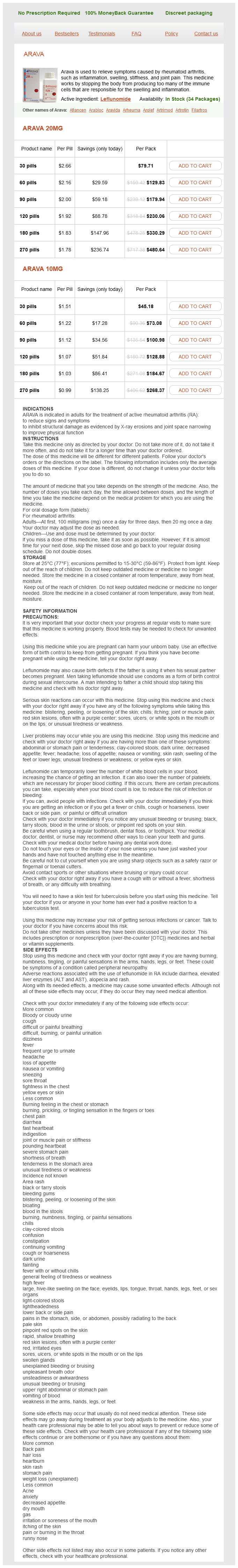 Following the tape stripping medicine video purchase leflunomide cheap, the remaining epidermal membranes or skin samples may be homogenized symptoms low blood pressure leflunomide 10 mg buy with visa, extracted treatment ear infection generic leflunomide 10 mg with amex, and analyzed for permeant content 5 medications related to the lymphatic system buy 20 mg leflunomide. The results of these studies demonstrate how the developed prototype formulations compare in terms of in vitro skin penetration treatment 101 generic leflunomide 10 mg fast delivery, distribution, and permeation. The criteria for determining the preferred formulation using an in vitro skin model will depend on the particular circumstances. For example, preferred formulations for dermatological activity may demonstrate rapid uptake of drug into the Topical and Transdermal Delivery 497 epidermal layers together with limited transfer of the drug through the skin. On the other hand, preferred vehicles for transdermal systemic delivery will be those demonstrating both rapid penetration into and rapid permeation across the skin. This section concentrates on the formulation development of dermatological and transdermal products and will take into account several important factors in the development process. In many companies, the first stage of product development is the formation of a project team. At the inaugural meeting of this team, it is essential that all members be aware of what is required from both a medical and a marketing point of view. Realistic time schedules should be drawn up with welldefined decision points, and due allowance should be made for the inevitable slippage time. In the early stages of product development, there is usually a bottleneck in the analytical department. Most companies work on the basis of allowing two analysts per formulator, but this ratio is often inadequate. It is of paramount importance that the analytical department be involved in the early stages of the formulation process. These are the people who will have to analyze the prototype formulations and look for evidence of stability problems as soon as possible. They are, of course, capable and equipped to do this, but time will be saved if they know precisely what materials the formulator is planning to include in the prototypes. There is no substitute for a fully validated stability indicating assay, but initial "rough" analytical methods can be extremely useful for determining what excipients to avoid and what conditions, such as pH, are critical to the formulation. Although the medical and marketing departments will have defined targets in terms of disease to be treated, and territories in which the product is to be launched, it is up to the formulator to specify and identify the optimum formulation. This leads to the unsatisfactory, but unavoidable, situation of the formulator trying to obtain a formulation containing a "hypothetical" maximum dose. Throughout the development process, it is important to maintain a high level of quality. Formulation Type the selection of formulation type for systemic transdermal products, which are designed for application to intact non-diseased skin, is guided by the requirement of the system, be it a semisolid, spray, or patch preparation, to deliver therapeutic amounts of drug into the systemic circulation. On the other hand, the selection of formulation type for dermatological products is influenced more by the nature of the skin lesion. As pointed out by Kitson and Maddin (1998): "It is idle to pretend that the therapy for skin diseases, as currently practiced, has its origins in science. For these reasons, the dermatological and transdermal formulator must be skilled in the art and knowledgeable in the science of a variety of formulation types. In general, the preparation of such formulations as poultices and pastes is extemporaneous, and it is unlikely that the industrial pharmaceutical formulator will be required to develop stable, safe, and efficacious products of this type. Solutions and powders lack staying power (retention time) on the skin and can only afford transient relief. In modernday pharmaceutical practice, semisolid formulations are preferred vehicles for 498 Walters and Brain dermatological therapy because they remain in situ and deliver their drug payload over extended periods. In the majority of cases, therefore, the developed formulation will be an ointment, emulsion, or gel. Topical and Transdermal Delivery 499 inactive ingredients in semisolid preparations can be a significant factor in formulation efficacy (Wiechers et al. Ointments In its strictest definitive form, an ointment is classified as any semisolid containing fatty material and intended for external application [U. In practice, ointments are considered to be semisolid anhydrous external preparations. In the 19th century, ointments were based on lard, a compounding material, the usefulness of which was severely limited by its tendency to turn rancid. Early in the 20th century, lard was replaced by petrolatum (white or yellow soft paraffin or petroleum jelly). In present practice, nonmedicated ointments (ointment bases) are used alone, for emollient or lubricating purposes, or in combination with a drug for therapeutic purposes. The anhydrous hydrocarbon bases contain straight or branched hydrocarbon chain lengths ranging from C16 to C30 and may also contain cyclic alkanes. A typical formulation contains fluid hydrocarbons (mineral oils, liquid paraffins) mixed with longer alkyl chain, higher melting point hydrocarbons (white and yellow soft paraffin, petroleum jelly). The difference between white and yellow soft paraffin is simply that the white version has been bleached. Hard paraffin and microcrystalline waxes are similar to the soft paraffins except that they contain no liquid components. These anhydrous mixtures tend to produce formulations, which are greasy and unpleasant to use. The addition of solid comp